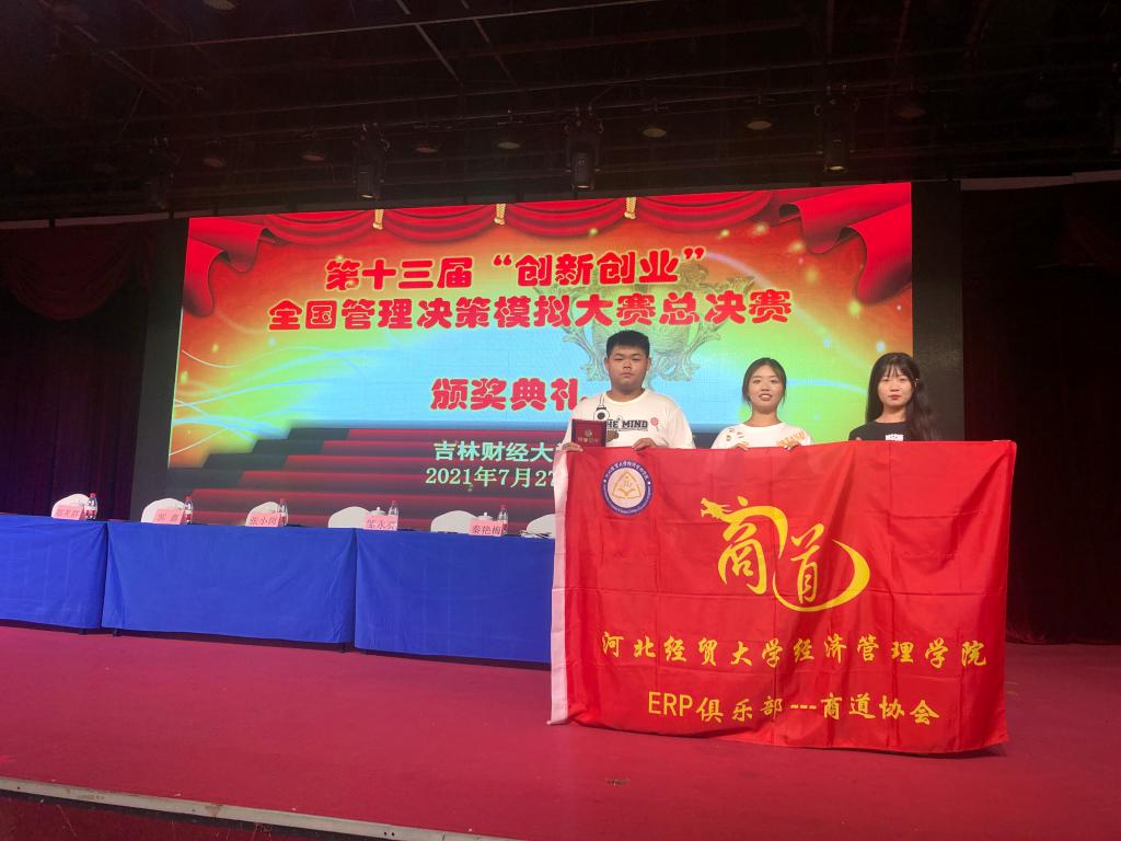 派出由2019级金融学3班苑佳辉、2019级物流管理1班赵雪莲和2019级电子商务2班关燕微组成的代表队参加了本次比赛。通过三位同学的团结协作,一路过关斩将,脱颖而出,最终取得全国总决赛一等奖的好成绩。