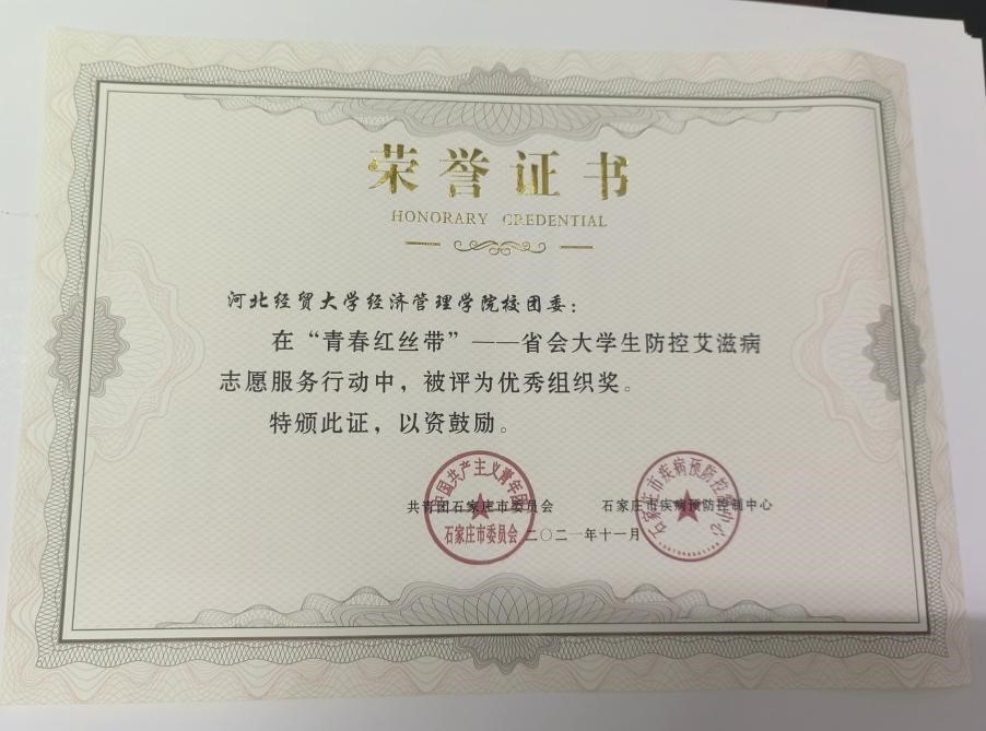 被团市委、市疾控授予“青春红丝带—省会大学生防控艾滋病志愿服务行动”优秀组织奖。