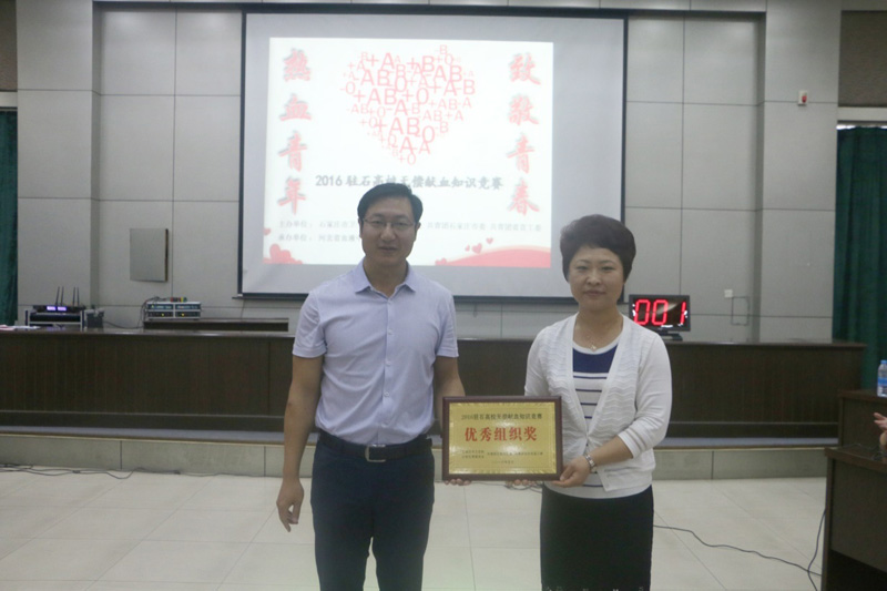 获得优秀组织奖。河北省血液中心主任、党委书记戚海、血液中心副主任陈莉、业务处处长常缨、质量法规处副处长王庆明、学院党委副书记刘会娟出席了本次活动。