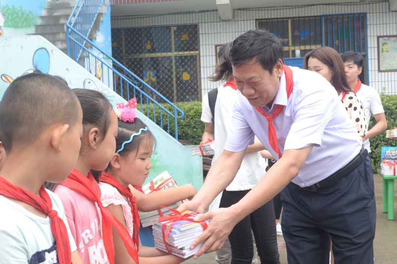 与秘家会小学长期帮扶、精准关爱之旅。张进良、廖俊峰、刘亚宁代表动漫屋