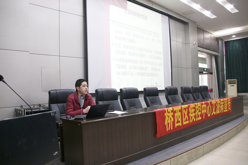 团委与校医院联合举办的“预防艾滋病主题讲座”在图书馆报告厅举行。桥西区疾控中心艾滋病所韦永民医生为300余名大一新生做了“青年学生和艾滋病”主题知识讲座。