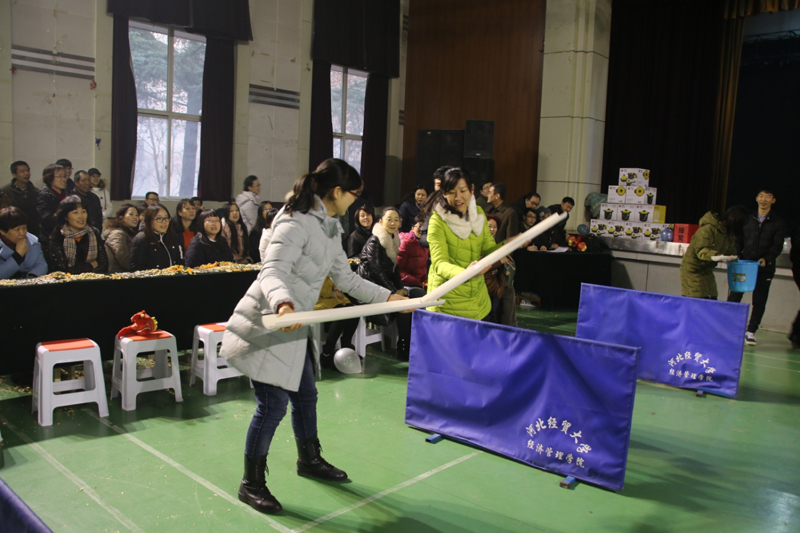 游艺会历时3小时,分个人游戏和集体活动两部分。首先进行的个人游戏环节中包括一分钟跳绳、吹蜡烛、定位投篮、夹乒乓球、套圈、钓鱼等8项趣味游戏;在随后开始的集体活动中,由学院各部门教职工表演的歌曲对唱、京剧名段、太极表演等节目精彩纷呈,击鼓传花、乒乓球接力、抢凳子等团体游戏项目更是将现场气氛推向了高潮;活动中,还设立了丰富的活动奖品和精美的纪念品,为广大师生在游艺活动中送上了新年的祝福和深切的问候。