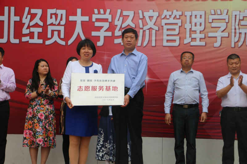 张进良代表经管学院向合作路小学进行授牌。