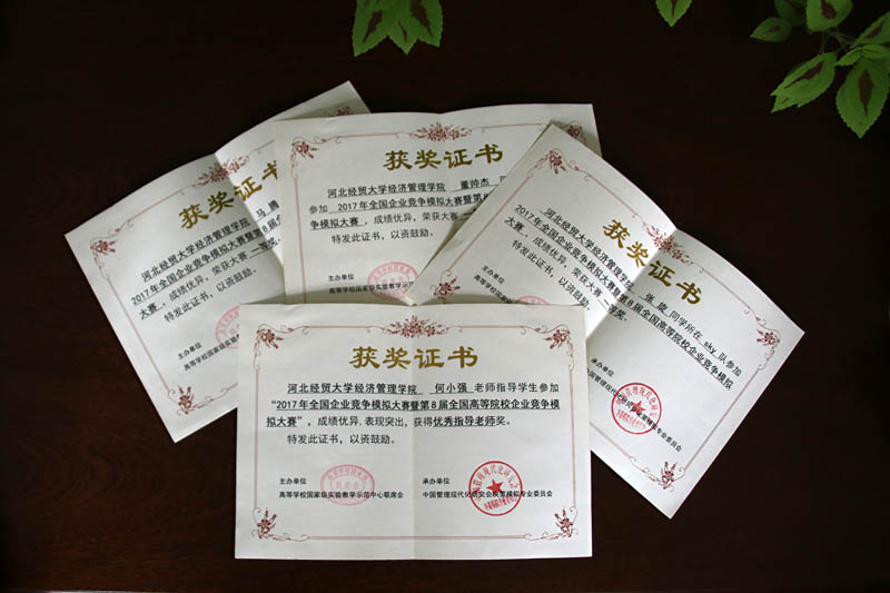 派出的三支代表队分别获得两个省赛一等奖,1个二等奖;在2016年12月“华北区第六届高等院校企业竞争模拟大赛”上,动漫屋