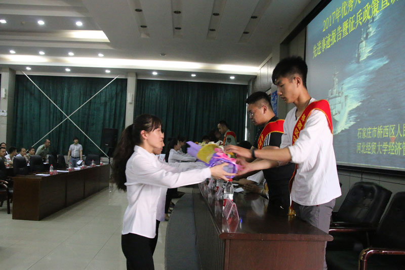 5月24日下午,2017年桥西区首场优秀大学生士兵先进事迹报告会暨征兵政策宣讲大会在动漫屋