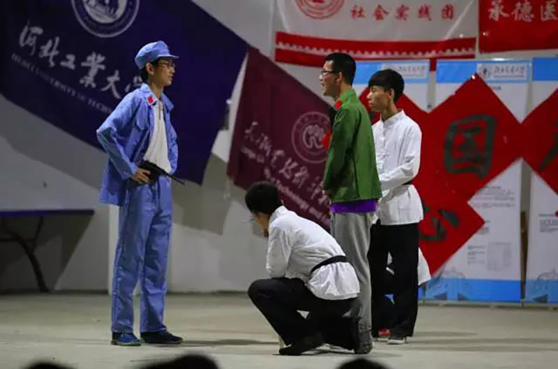 出征仪式后,社会实践师生们赴河北雄安白洋淀、清苑冉庄、易县狼牙山、阜平城南庄,以“传承·融合·拓展”为主题,以红色体验式主题教育为主线,以“红白黄绿银橙蓝——七彩颜色”为活动内容,在红色体验式主题教育、医疗志愿服务、农业推广调研、环保节能实践、科技体验宣传、爱心支教服务、京津冀高校融合等方面,联合开展社会实践。在太行山纪念馆,师生们为新时期共产党人的楷模、知识分子的优秀代表、太行山上的新愚
