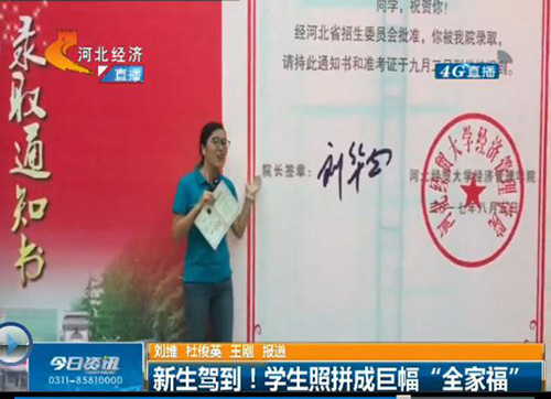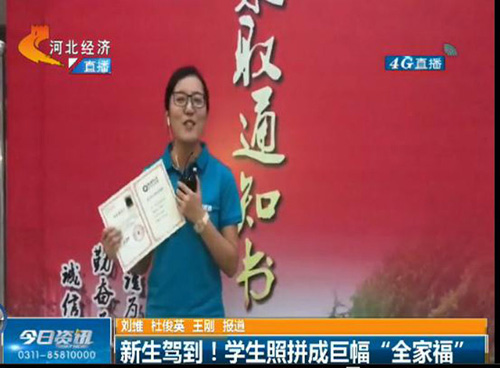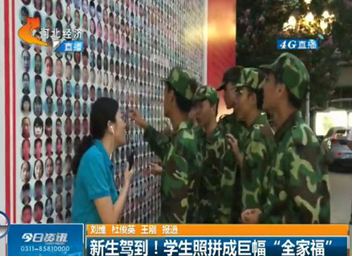9月14日晚6点30分,河北电视台知名栏目《今日资讯》以《新生驾到!学生照拼成巨幅“全家福”》为题,对动漫屋 创意迎新进行现场报道,学院党委书记张进良接受直播采访。