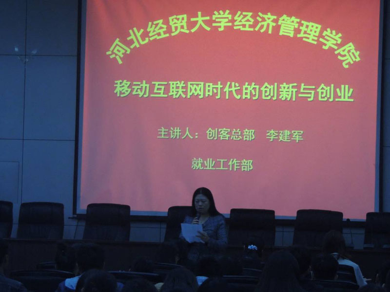 做题为“移动互联网时代的创业密码”的专题讲座。讲座由学院党委副书记张丽英主持,就业工作部、团委、学工部、各系书记及全体辅导员和部分学生参加。