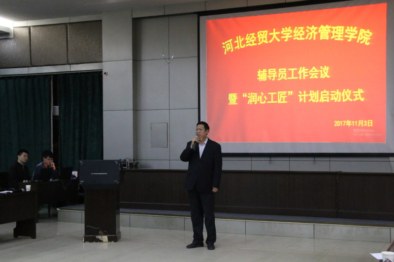 辅导员工作会暨“润心工匠”计划启动仪式在学院图书馆报告厅举行。学院党委书记张进良、副书记张丽英出席会议,学生工作部全体成员及学院全体辅导员参加。会议由学生工作部部长杜兰柱主持。