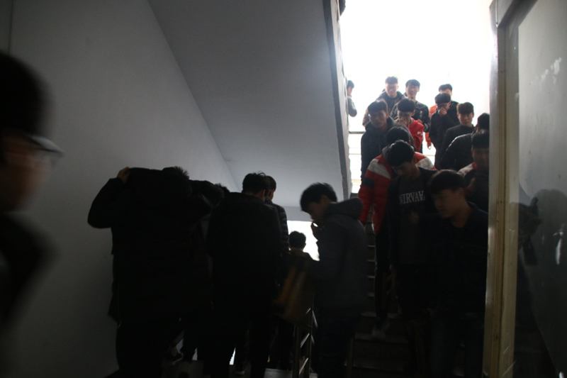 组织1号学生公寓近400位学生参加了紧急疏散演练。