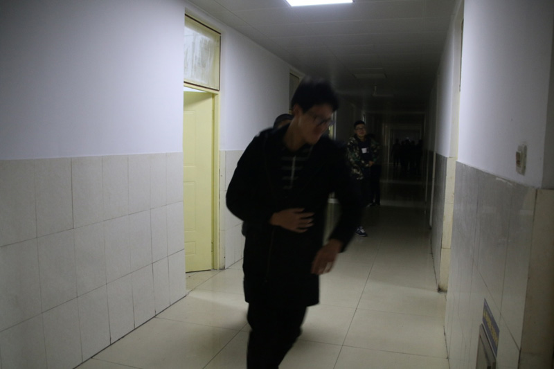 2点55分,伴随着警报声的响起,紧急疏散演习正式开始。应急疏散组成员指导学生捂住口鼻,伏低身体,快速撤出宿舍,按照预设的逃生路线,有序地撤离到公寓前的空地,并清点人数。整个疏散演练井然有序。