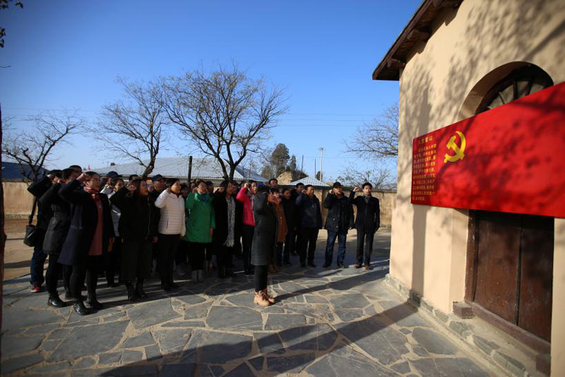 各系教工党员及学工部支部40余人赴平山县爱国主义教育基地,深切缅怀革命先辈的丰功伟绩,深情回顾党领导人民进行革命斗争的辉煌历史,重温入党誓词,学习贯彻十九大精神。