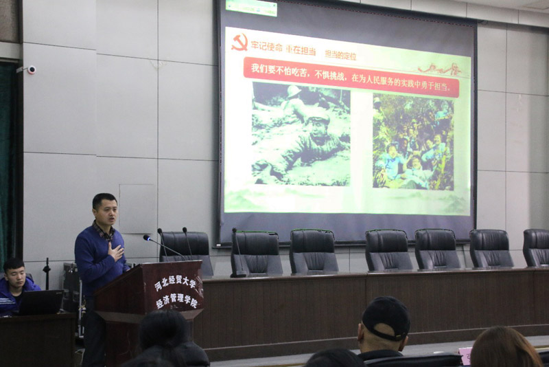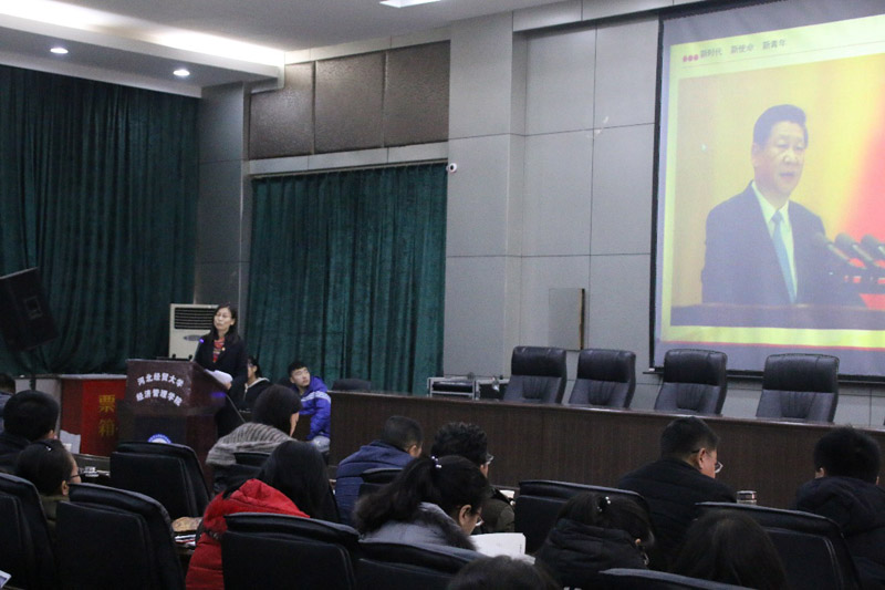 12月15日上午,由中共河北省委高校工委、河北省教育厅共同组织开展的河北省高校辅导员学习宣传贯彻党的十九大精神校园巡讲活动在学院图书馆报告厅举行。燕山大学郭清秀、河北地质大学赵明、石家庄铁道大学张锦峰三位我省骨干辅导员担纲主讲。学院党委副书记张丽英、各系党总支书记出席活动,学院团委、就业工作部等相关部门负责人、学生工作部全体工作人员以及300余名学生聆听报告。活动由学生工作部部长杜兰柱主持。