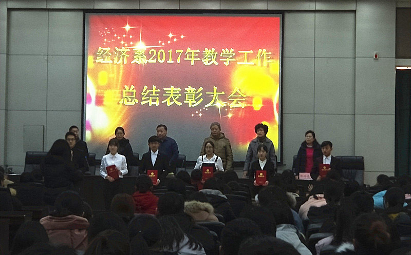 12月13日,经济系2017年教学工作总结表彰大会在图书馆报告厅隆重召开。院长刘华光、教务部部长郭占欣、实践教学部部长张风海、副部长柳冬青、经济系书记郑学栋、主任张玲芝及系全体辅导员出席了会议。会议由郑庆国老师主持。