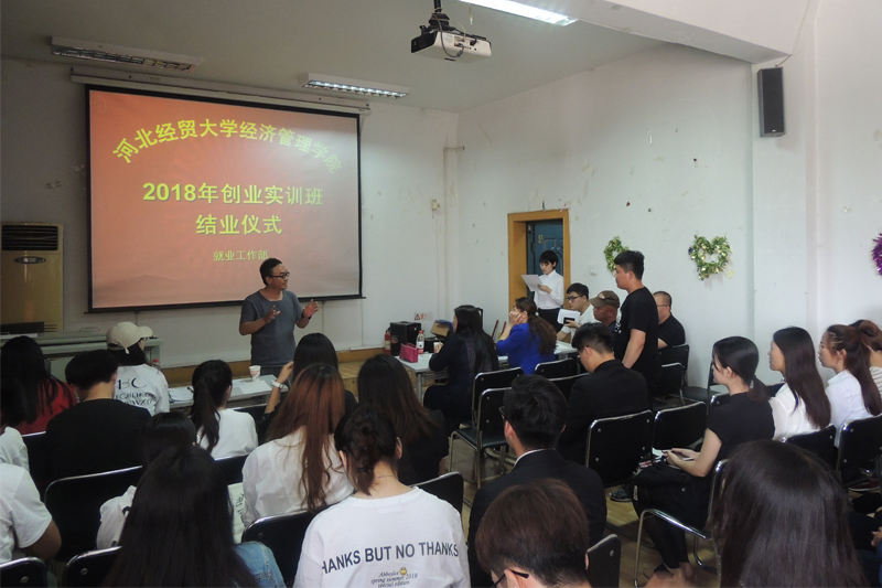2018年大学生创业培训班结业式在一教305举办。学院党委副书记张丽英、就业工作部部长韩平生、副部长秦晓燕出席,就业工作部其他老师及培训班所有学员参加。活动聘请国家人力资源和社会保障部认证企业培训师闫亮担任培训班授课教师。