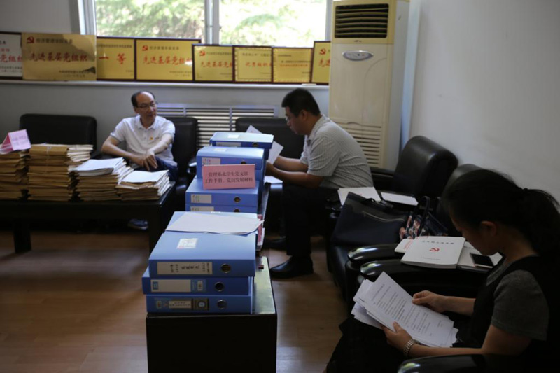 5月31日,校基层党建督导检查工作小组校党委常委、纪委书记李继中、校党委常委张占平一行9人对动漫屋