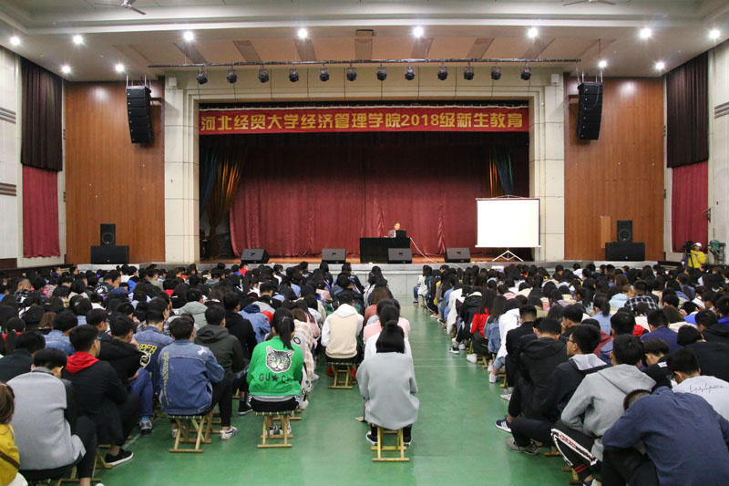 2018级新生做了专题报告,商务系、信息系新生聆听讲座。院党委副书记张丽英主持讲座。