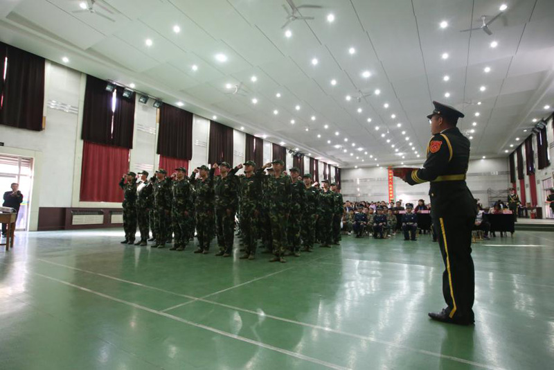 比赛在庄严的展国旗奏唱国歌仪式中拉开帷幕,一段铿锵有力的记录片展现了学院国旗护卫队坚韧不拔、斗志昂扬、积极向上的精神风貌,兄弟院校的国旗护卫队以视频的方式为比武大赛送上祝福。5个班34名参赛队员踩着整齐的步伐依次进场进行队列会操表演,各班以激昂的士气,饱满的精神状态、整齐的步伐、飒爽的英姿征服了观众,现场掌声阵阵。