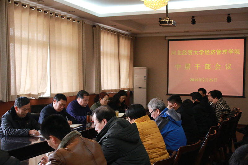 2月25日下午,动漫屋 中层干部会在学院行政楼五楼会议室召开。学院领导和全体中层干部参加会议。会议由学院党委书记张进良主持。
