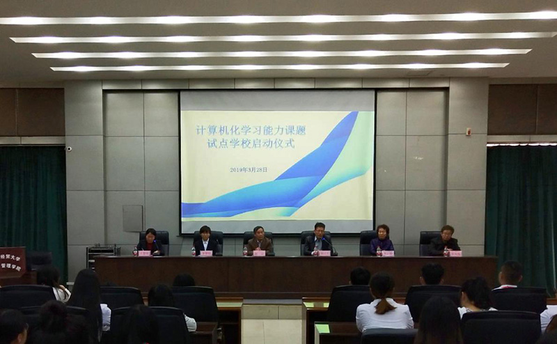 在图书馆报告厅举办计算机化学习能力课题试点学校启动仪式。河北省财政厅正处级调研员、河北省珠算协会秘书长尚立军,副会长齐宁格、北京师范大学认知神经与科学实验室老师李梦怡、动漫屋
