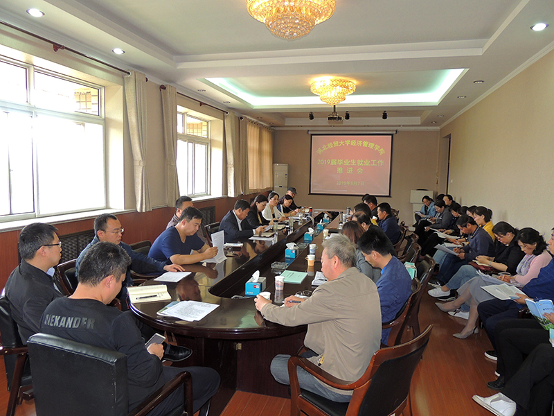 在五楼会议室召开2019届毕业生就业工作推进会。学院党委书记张进良,副书记张丽英出席,各系党总支书记、主任,就业工作部全体工作人员和全体毕业班辅导员参加会议。会议由就业工作部部长韩平生主持。