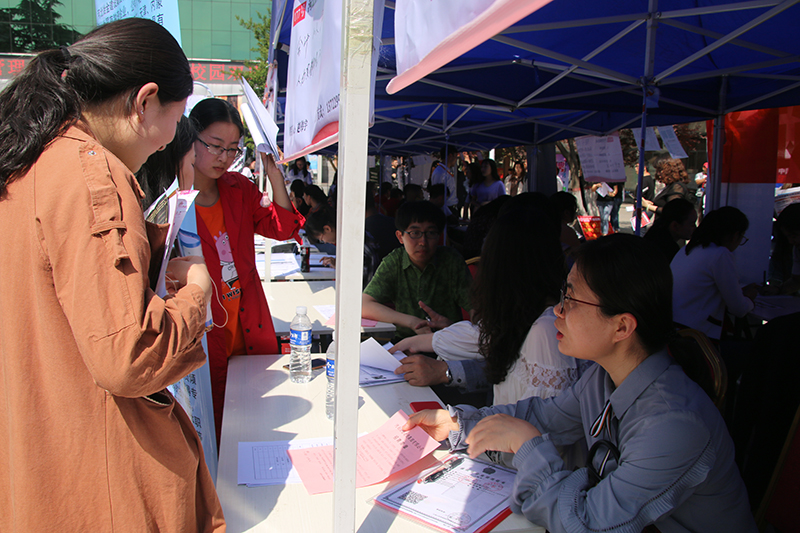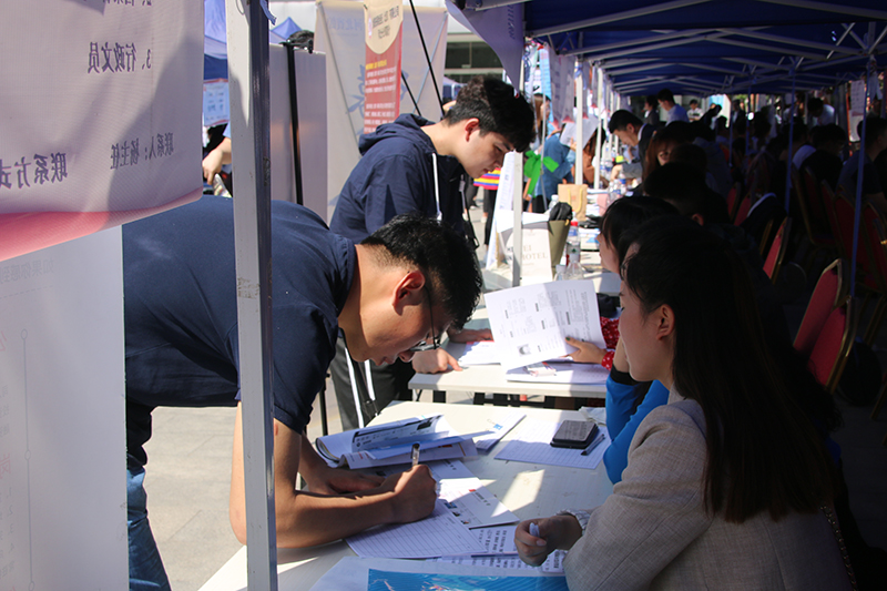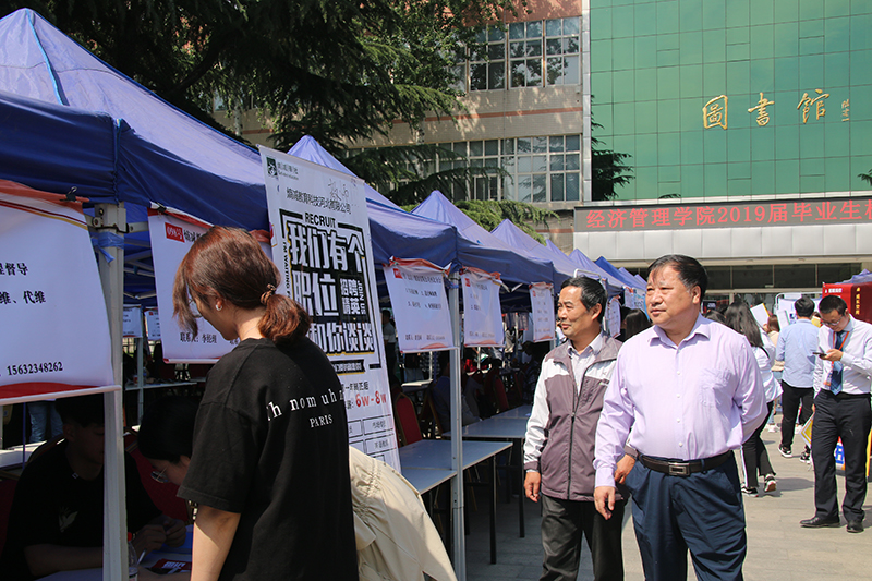 2019届毕业生校园双选会在图书馆广场举行。学院领导和各系书记亲临现场,指导工作并调研就业情况。就业工作部相关人员及毕业班辅导员现场办公,为毕业生答疑解惑。两千余名毕业生参加了双选会。