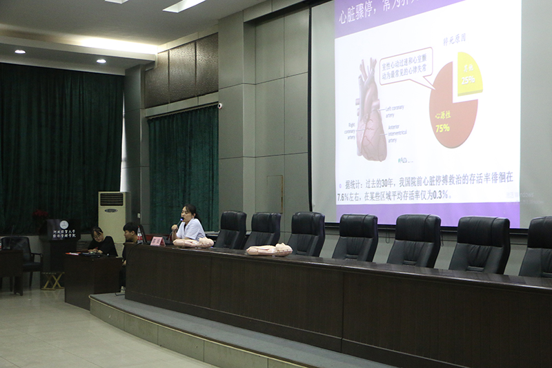 校医院副院长陈娟和石家庄市公安局桥西分局育文派出所于兵警官讲解急救知识和宿舍安全,共有200多名学生宿舍代表参加。