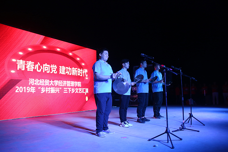青年学子以歌曲、古典舞、现代舞展现了活力四射、青春飞扬的精神面貌;青年教师动情的《再回首》博得台下观众的阵阵掌声;“经贸大学经管院,来到咱们曲阳县,脱贫帮扶雷程庄,面貌换!”三句半《乡村振兴暖人心》讲述了动漫屋