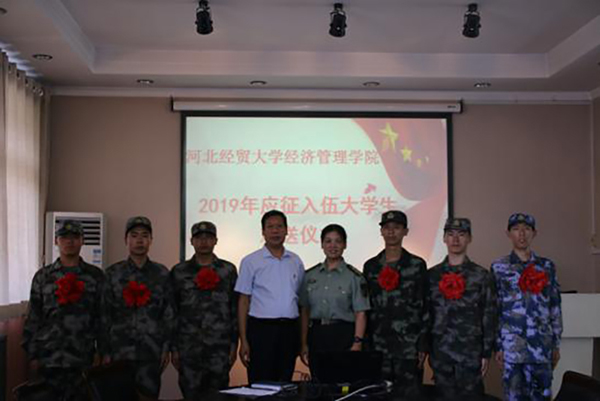 9月9日下午,学院2019年应征入伍大学生欢送仪式在行政楼五楼会议室举行。院党委书记张进良、副书记张丽英出席仪式并讲话。各系党总支书记、学工部部长以及2019年参军入伍大学生代表、院国旗护卫队队员代表、退役复学代表和新兵家长代表参加欢送会。仪式由学工部副部长王敏主持。