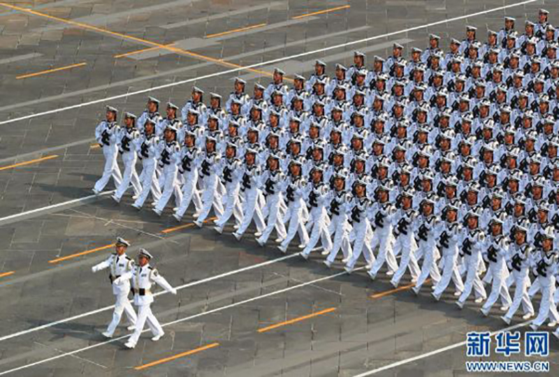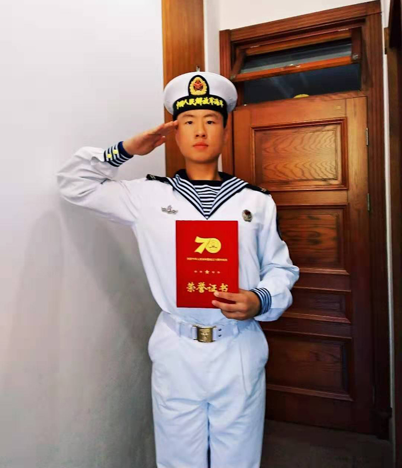 经济系2017级金融专业学生杨柏林作为海军方队一员参加国庆阅兵式,接受祖国和人民的检阅。