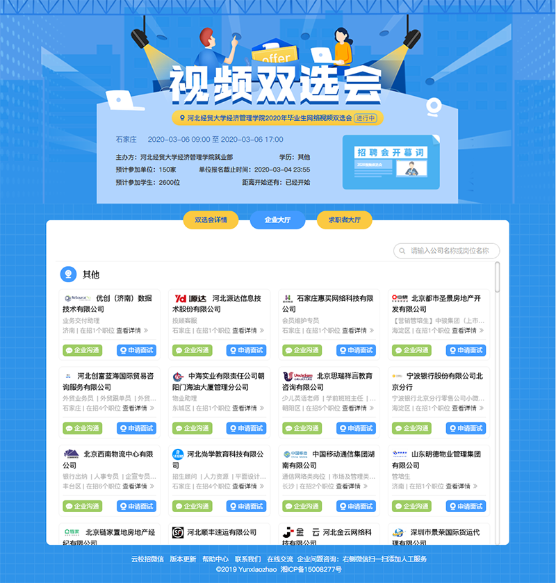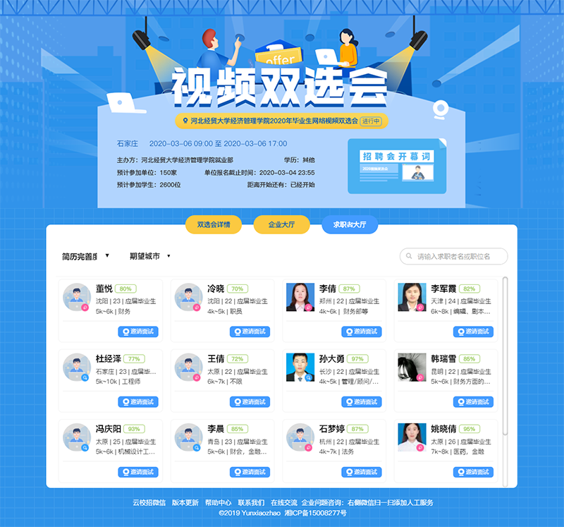 成功举办2020届毕业生云就业网络视频双选会。