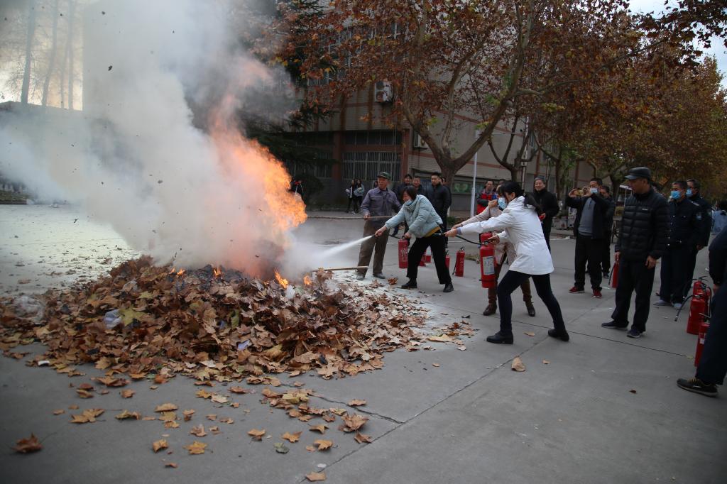 培训会后,安全工作部人员在操场甬道为安全员们现场演示灭火器的使用方法。(撰稿/摄影:郑廷)