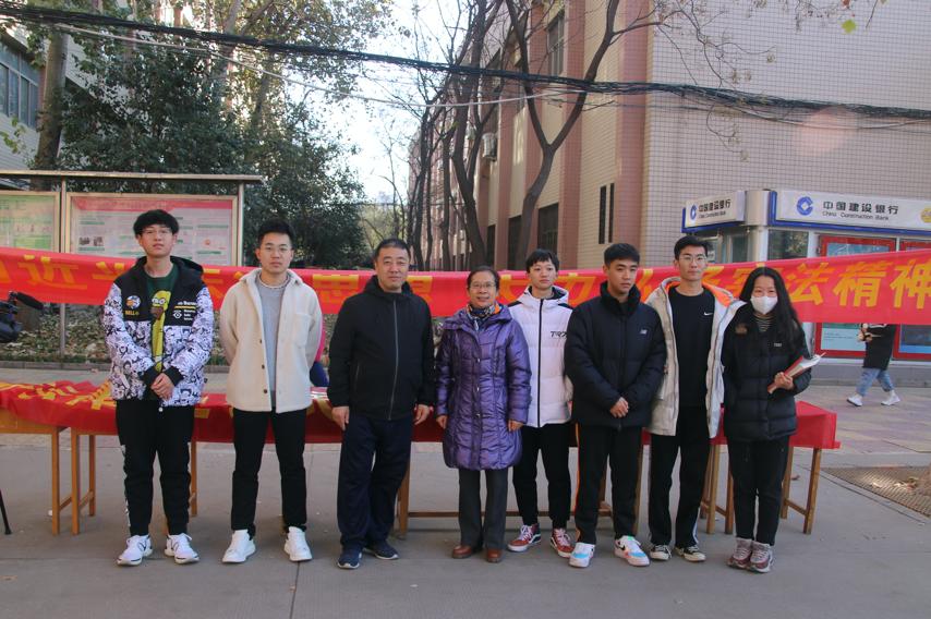 宪法日校园普法宣传活动在甬道开展。文法系党总支书记白建峰、赵占亚主任参加活动。