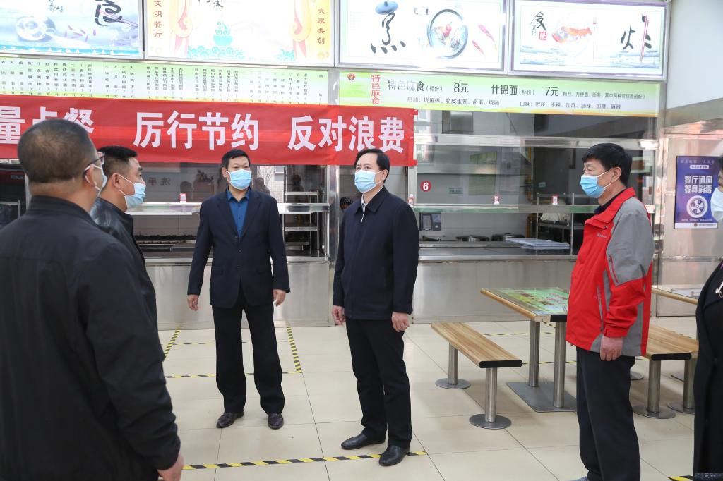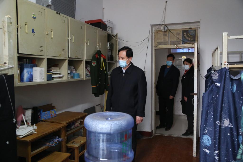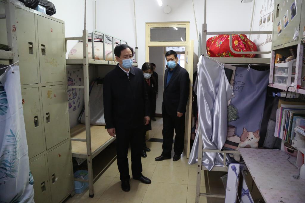 刘建平首先来到学生宿舍,叮嘱大家务必一切以学生为本,想学生之所想,急学生之所急,以高度的责任感和饱满的工作热情为学生提供热忱细致的服务,保障学生利益,确保每一位学生平安愉快返校。随后,刘建平对学生餐厅、教工餐厅、食堂后厨等进行检查,了解各项准备情况,提出具体要求。