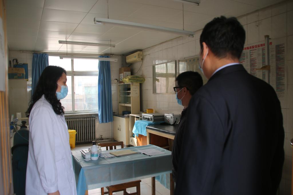 刘红健首先听取了学院相关工作的简要汇报,仔细查阅了相关工作方案和应急预案;随后,实地查看了校园门岗、学生宿舍、学生食堂、校医院等场所,重点查看了疫情防控物质储备和隔离观察场所设施设备情况。他边走边看边问,详细了解了学生校园出入管理、防疫安全保障、校园后勤服务、校园日常消杀以及学生用餐管理、学生健康管理、教育教学安排等工作的开展情况。