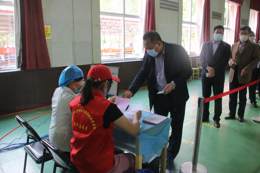师生员工分时段、分批次到学院礼堂接受新冠病毒疫苗接种。院领导刘风长、张进良、江秀军、张金桐、刘翼莲、郭海燕等带头完成新冠病毒疫苗接种。