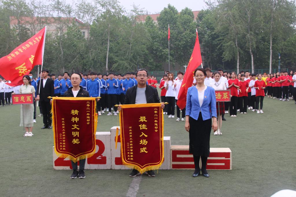 师生团结拼搏的运动精神和积极向上的良好风貌。最终,管理系、经济系、会计分别获得团体总分前三名。商务系荣获精神文明先进集体,会计系荣获最佳入场式奖,文法系、经济系、信息系、管理系荣获体育道德风尚奖。