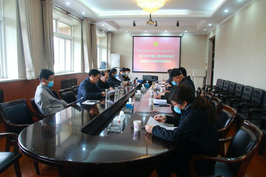 党委理论学习中心组召开扩大会议,专题学习习近平总书记在中国人民大学考察时的重要讲话精神。院党委书记马斌主持学习会并讲话,院党委理论学习中心组成员、各系党总支书记参加学习。