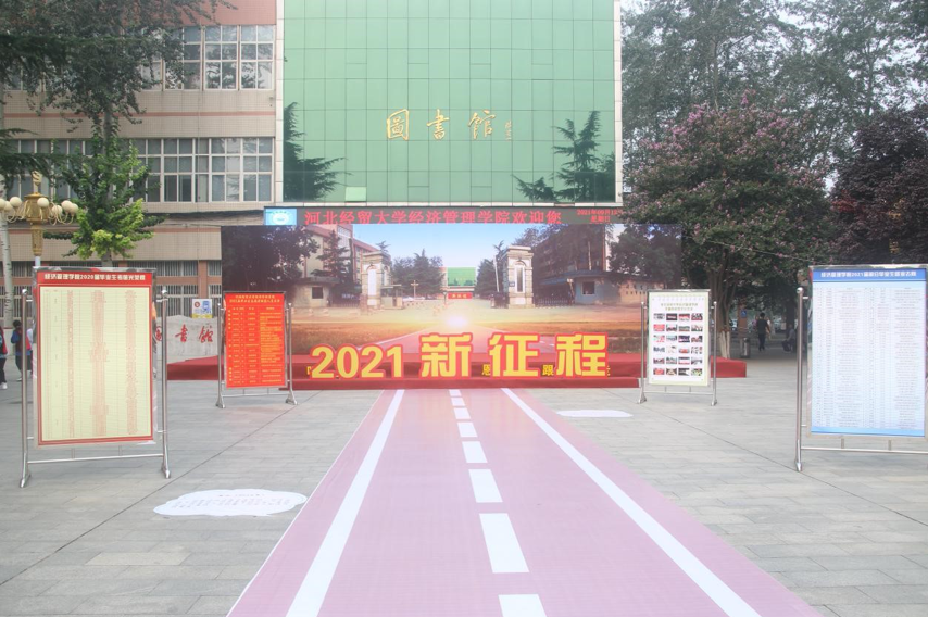 疫情相对稳定后,学工部重新组织迎新布展,协调校外工作人员做核酸,完全符合防疫要求的才能进场安装。9月17日,学工部动用最少的人员,用最短的时间完成布展。9月18日,2000多名新生,经过严格的防疫检测,跨过经管学院的大门口,迎面感受到学姐学长的热情和温馨互动的欢迎仪式。
