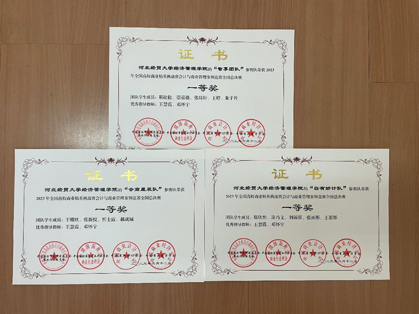会计系学生邢松松、张琦轩、崇嘉璐、朱子丹、王婷、郑欣怡、王若彤、许乃文、刘雨蓉、张雨桐、王耀新、张新悦、忻士霞、郝成诚等人组队参赛。历时5个月,通过理论知识的考察、撰写案例企业的财务投资分析报告进入决赛。最终,通过精美的视频展示、缜密的现场答辩,三支队伍荣获全部荣获一等奖,并且“智享团队”成功晋级精英赛,取得全国第六的优异成绩。王慧霞、邓怀宇荣获优秀指导教师称号。
