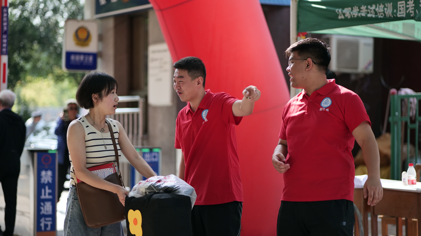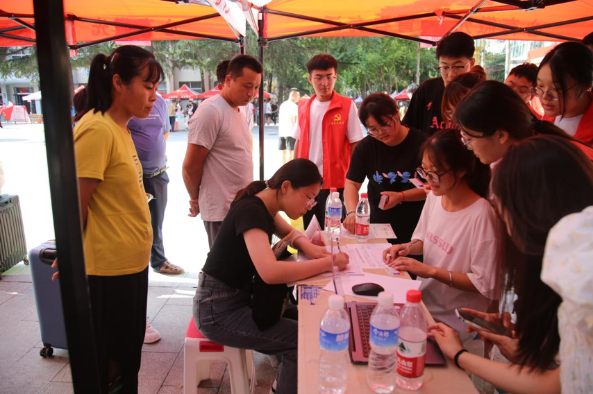 8月23日清晨7点,志愿者们早早来到帐篷等候大批学生前来报到。8点多,新生在众亲友大包小包地簇拥下陆陆续续进入校园,寻找自己的“组织”。报到现场秩序井然,学生们到各系完成报到、证件验证、宿舍分配、领取物资等入学手续后,前往宿舍入住。
