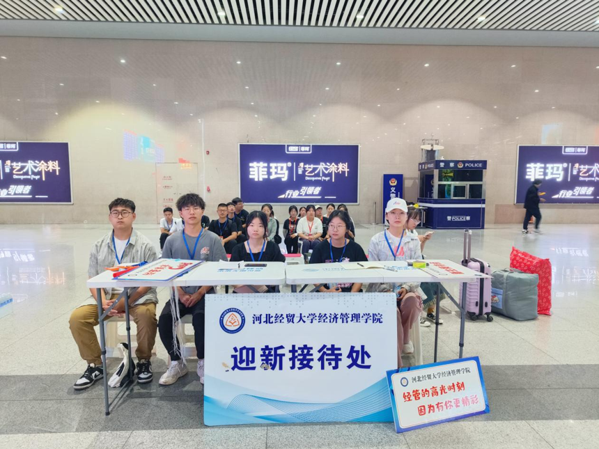 为了方便乘坐火车来的学生,学院在火车站为2023级本科生提供免费接站服务,志愿者们将接站牌摆在最显眼位置,让“萌新”们一出站就感受到经管温暖的“第一缕阳光”。