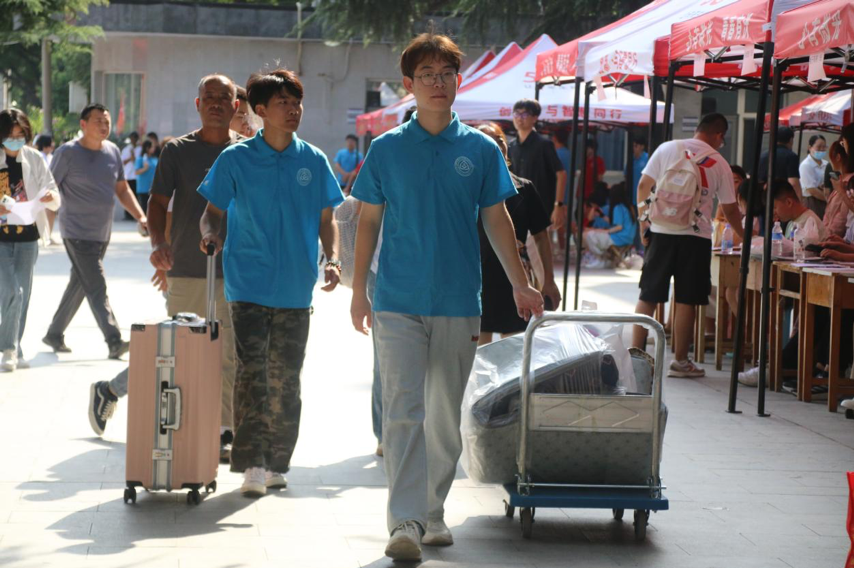 行李太多怎么办?各系为打通报到点到学生宿舍楼的“最后一公里”,都准备了小平板车,身穿红蓝马甲的志愿者们以饱满的热情协助新生搬运行李,为家长答疑解惑。医务室、后勤服务中心、宽带服务人员在宿舍附近设立帐篷,给学生提供便捷贴心的服务。