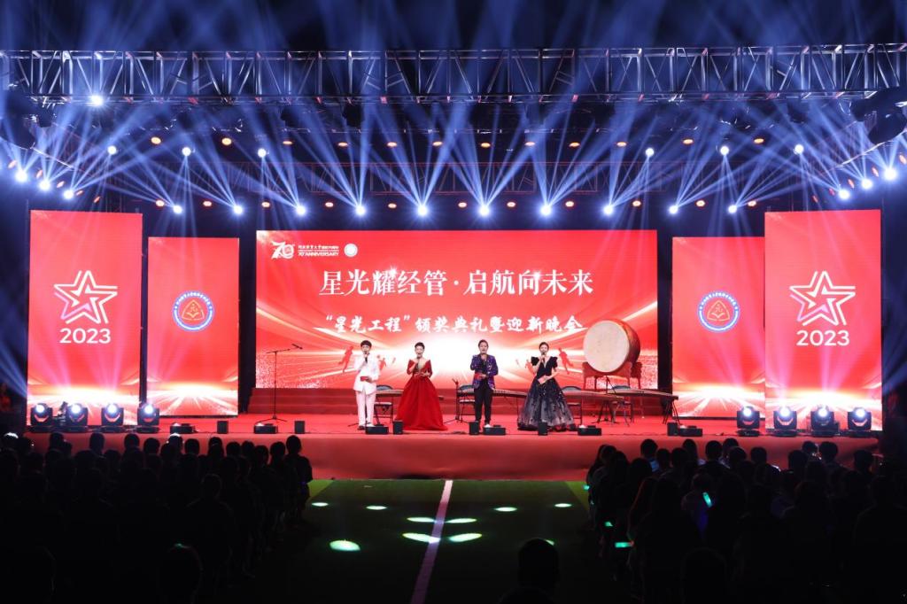 2023年星光工程颁奖典礼暨迎新晚会在南校区操场隆重重启。校党委常委、副校长张秀山,学校办公室副主任贾鹏,学校学生处副处长马亮,学院领导及各系部负责人与2023级新生共同观看了晚会盛况。