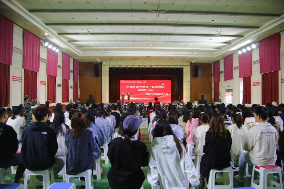 10月23日下午,学院在礼堂隆重举行国旗护卫队换届仪式暨比武大会。河北省教育厅学校德育中心主任蔡杭州、中国教育报刊社河北记者站副站长周洪松、中国青年报全媒体用户(河北)中心主任李洪峰、学院党委书记蔡杨、副书记张丽英出席。河北德育共同体成员单位负责人,石家庄工商职业技术学院副院长卓丽杰,河北工业职业技术大学学生处处长牛晓艳,河北交通职业技术学院学生处处长盖小丽,石家庄幼儿师范高等专科学校学生处处长王彤,石家庄市第41中学北校书记赵冲会、石家庄市第110中学书记乔利国、石家庄市维明路小学校长王静、石家庄市神兴小学校长张利宁、石家庄市雷锋小学校长贾会琴、石家庄市第40中学教育处主任孔晓峰、纪静应邀到场参加并担任评委。