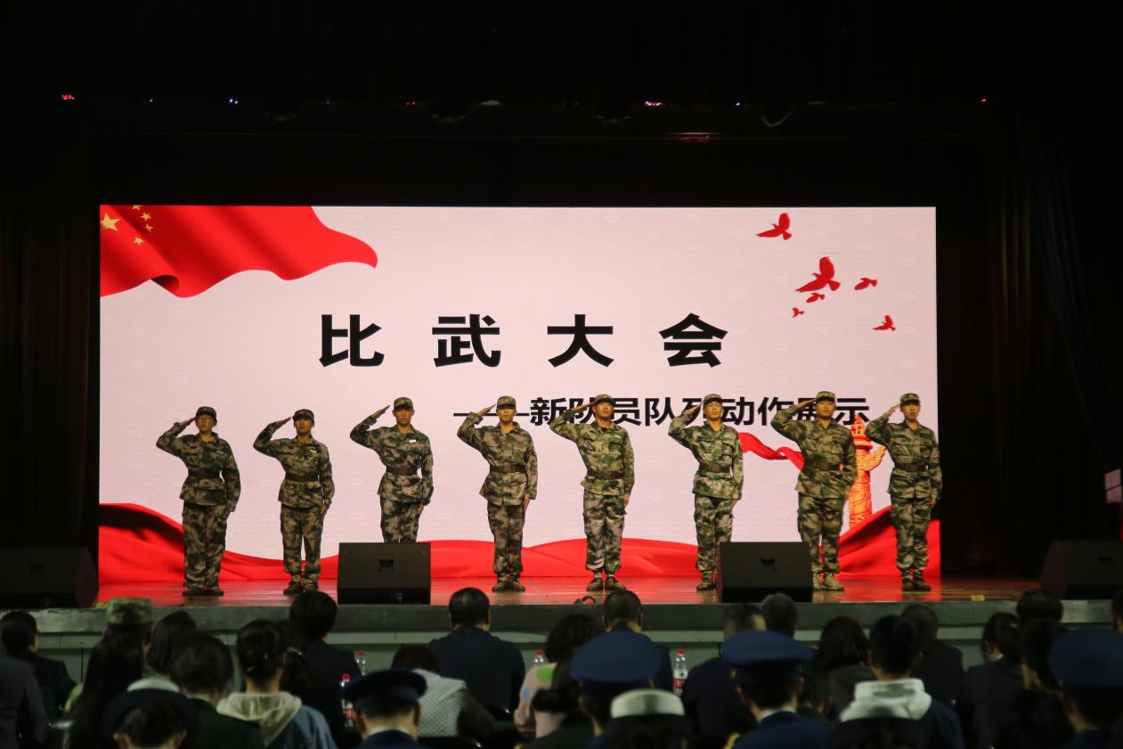 比武大会上,匕首操、刺杀操出刃带风,铿锵有力,新队员们动作娴熟,喝声阵阵,豪情满怀;捕俘拳表演中,擒拿格斗摔腾空,同学们迅猛出拳,动作一气呵成、铿锵有力、气势磅礴。队列动作干净利落,倒功活力昂扬,展现着青春别样风采。大一的新队员们还显稚嫩,相信假以时日,他们也能像师哥师姐一样交出一份完美的答卷。蔡杭州、周洪松、李洪峰分别为一二三等奖获得者颁奖。