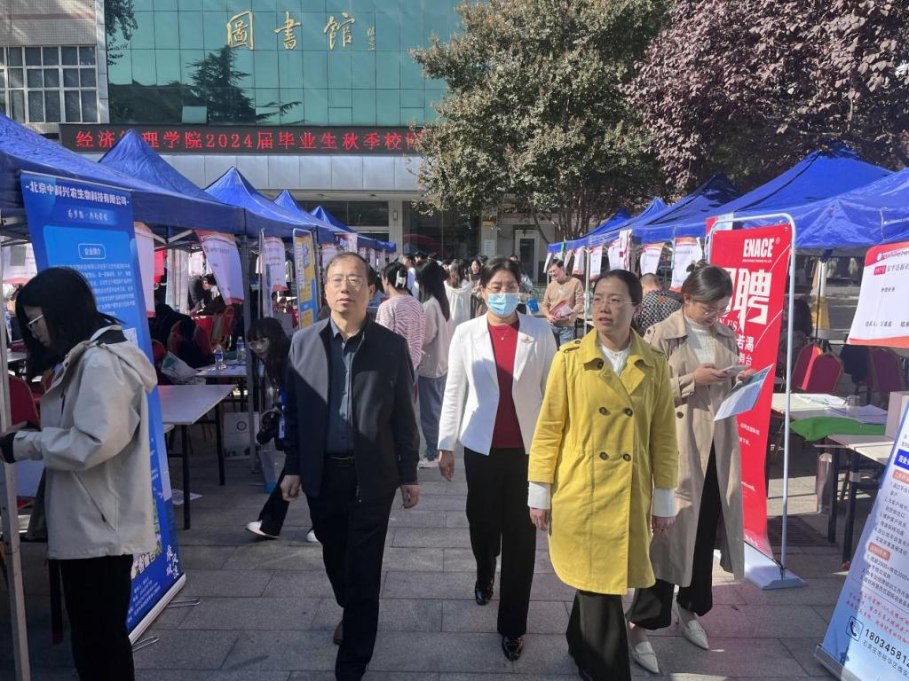 于图书馆广场举办2024届毕业生秋季校园大型双选会。本次双选会邀请到了格力电器有限公司、北京苏宁易购销售有限公司、青岛啤酒有限公司等200余家企业入校招聘。