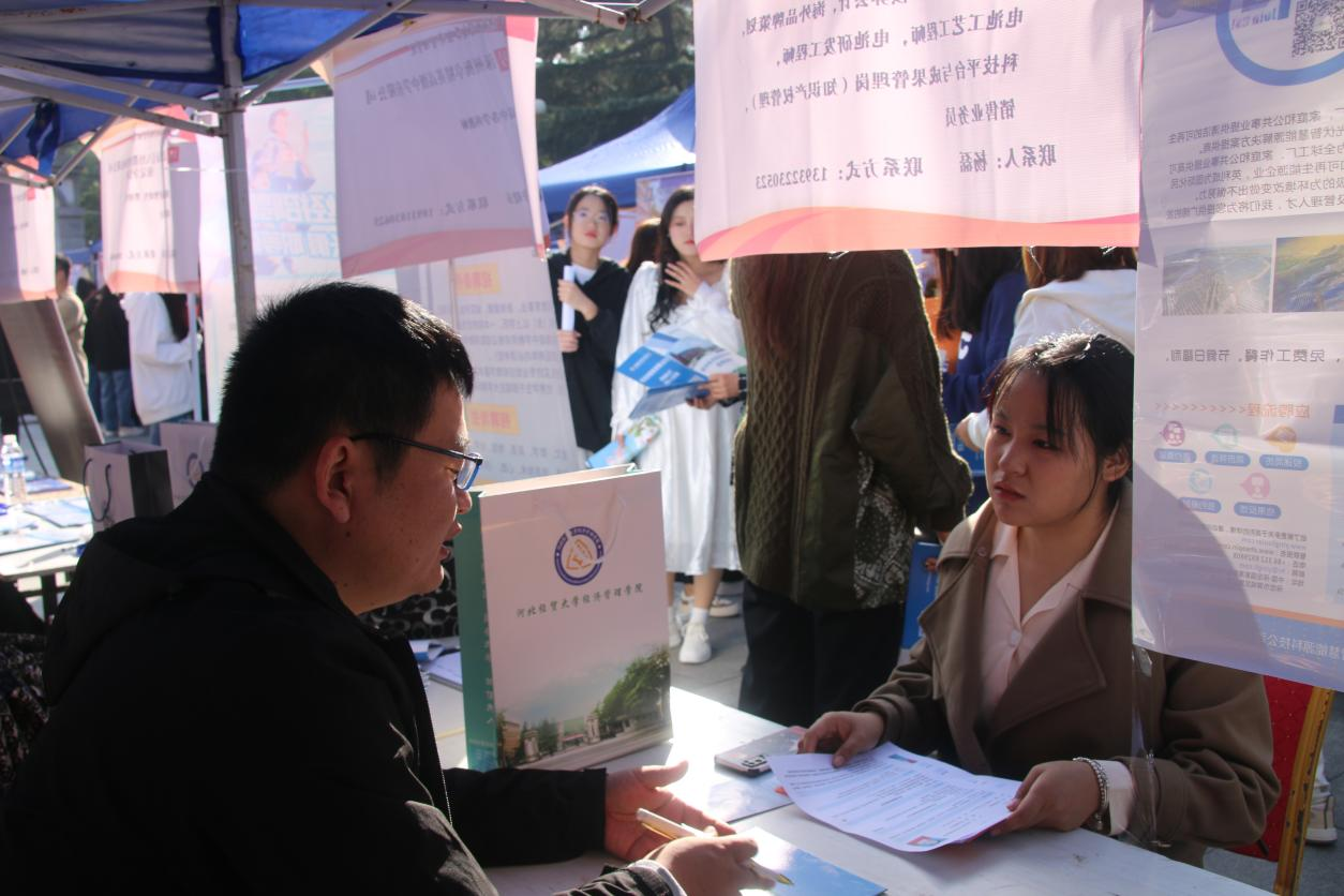 双选会现场组织有序、气氛热烈,用人单位携带各自的宣传资料和招聘简章,向毕业生详细介绍了企业的发展情况、岗位需求以及薪酬待遇等信息。家家优羊科技有限公司石家庄分公司赵经理介绍说:“疫情结束后,我国经济就业形势持续好转,企业为高校毕业生提供的岗位和机遇也越来越多。我们企业刚在石家庄设立分公司,希望能在这次双选会上招到更多的人才。”多家招聘企业建议同学们要充分发挥自己的专业优势,积极参与专业实践,努力在企业招聘中提高自己的入职优势。