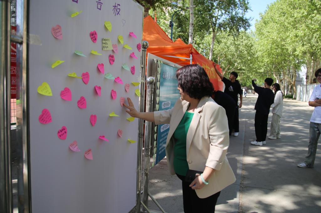 在捐书现场,各系师生纷纷携带自己闲置的图书前来,希望能够通过捐赠让这些书籍继续传递知识与智慧。志愿者们边收集整理图书边引导捐赠者填写信息。为了表达对捐赠者的感谢,学院邀请书画社的同学们特制了精美的文创书签,捐书者都会收到一枚这样的书签,作为他们爱心与智慧的见证。读书日活动得到了院领导的支持,他们应邀为同学们推荐好书并留下青年寄语,希望能给起到引航作用。现场还设置了一块爱心寄语展牌,吸引了许多爱书之人驻足,将自己的感想或寄语写在便利贴上,粘贴在展牌上,这些温馨的话语为图书旅行活动增添了更多的温度与意义。