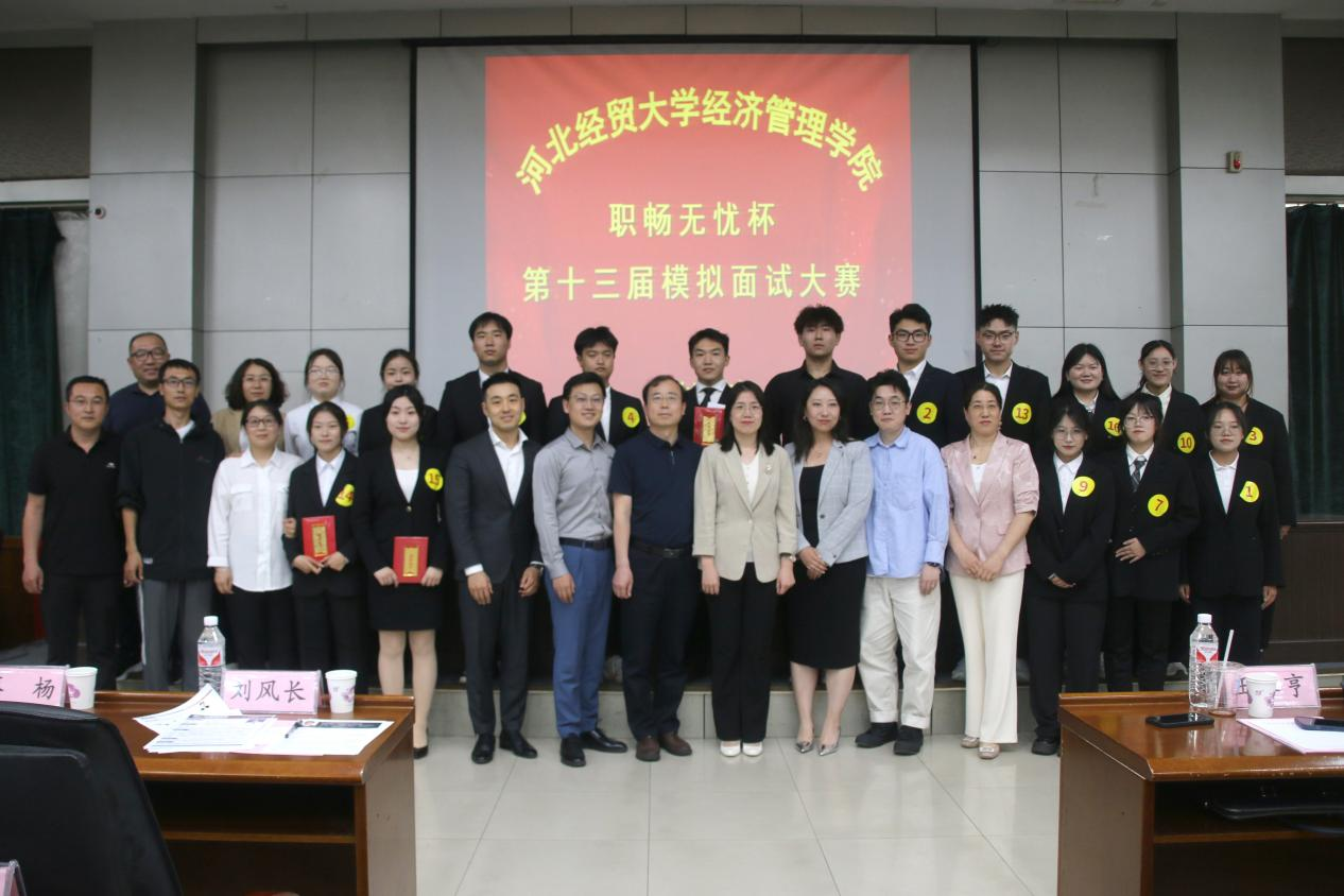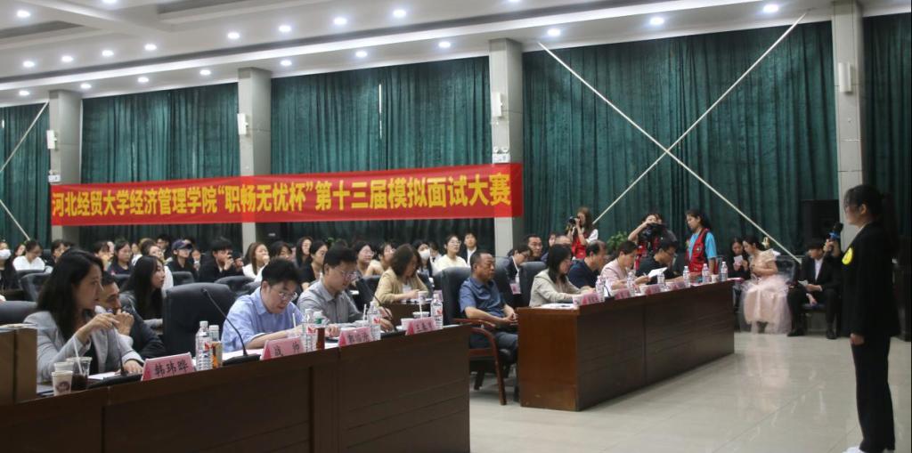 第十三届模拟面试大赛决赛在图书馆报告厅举行。本次大赛特邀职畅无忧教育总裁王春亨、职畅无忧教育联合创始人韩玮晔、雪光态科技有限公司创始人战帅、云账户技术天津有限公司企业服务部总监郭临沧,以及学院领导刘风长、蔡杨、王鸿喜及各系党组织书记和就业工作部负责人担任评委,各系副书记、全体辅导员和百余名学生到场观看。